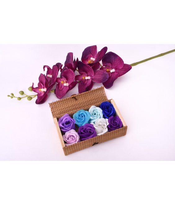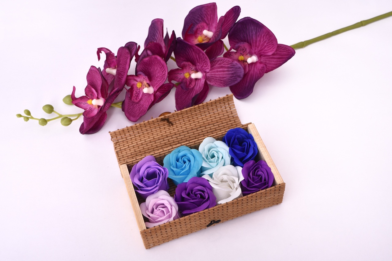 SET DE CADOU SĂPUN – Deosebește-te de ceilalţi, oferă un cadou cu adevărat excepţional, realizat manual – 8 trandafiri, făcuţi manual de artizanii autohtoni. Setul este ambalat într-o cutie decorativă din bambus, realizată manual.