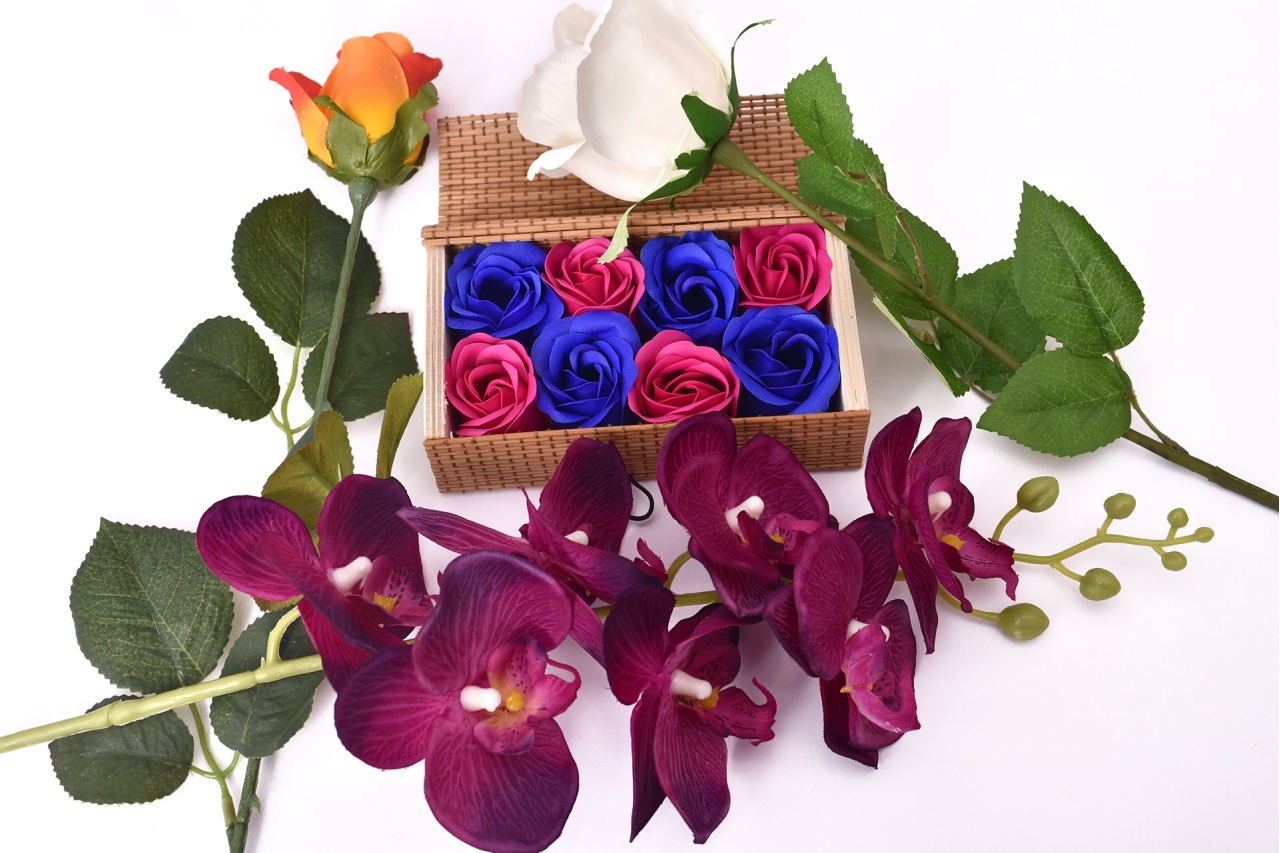 SET DE CADOU SĂPUN – Deosebește-te de ceilalţi, oferă un cadou cu adevărat excepţional, realizat manual – 8 trandafiri, făcuţi manual de artizanii autohtoni. Setul este ambalat într-o cutie decorativă din bambus, realizată manual.